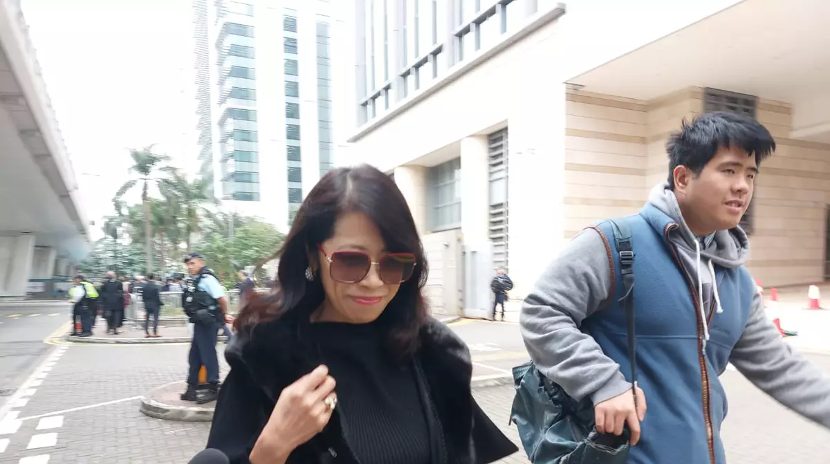黎智英太太李韻琴及幼子黎順恩(右)大約一點左右離開法院,未有回應記者提問。《巴士的報》記者攝