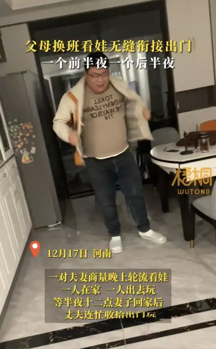 近日,內地河南一對夫妻為了平衡帶孩子的責任和個人自由,突發奇想商量出實行輪班制看護孩子的方式,可以讓雙方在不同時間段外出享受個人時光。