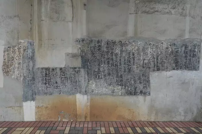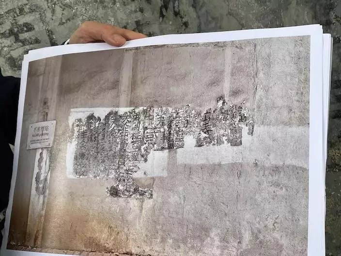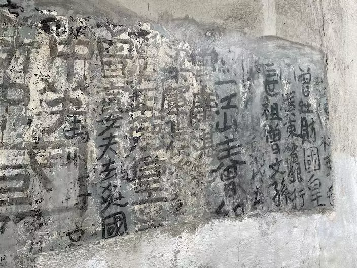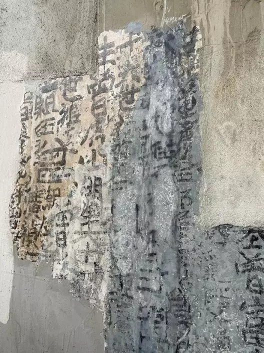 牆身上明顯有三種不同顏色,顯示至少有三層墨蹟。