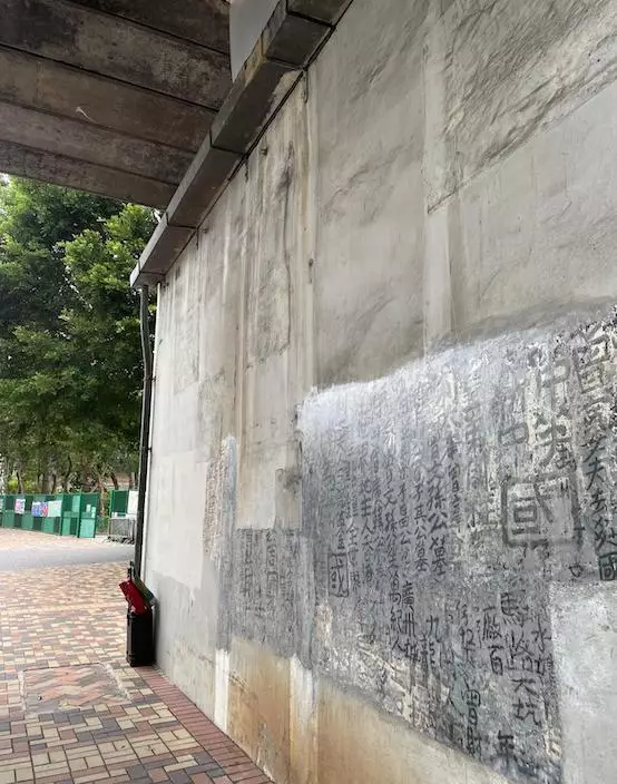 不過,既然墨寶在街上,專家是否考慮到如何令其免受風吹雨淋的侵蝕?仔細撫摸墨寶就知,墨寶已經被加上一層專門的保護物料製成的塗層,即便是被人大力摩擦,也不會有損原有的墨蹟。除此之外,港鐵也特別做了排水槽,防止風雨侵蝕珍貴的墨寶。
