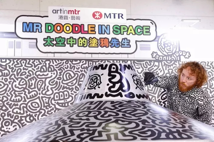 今年 11 月,英國藝術家 Mr Doodle「塗鴉先生」在香港站為乘客呈獻現場藝術表演,創作以太空船為題、即席創作出融入港鐵元素的藝術品。