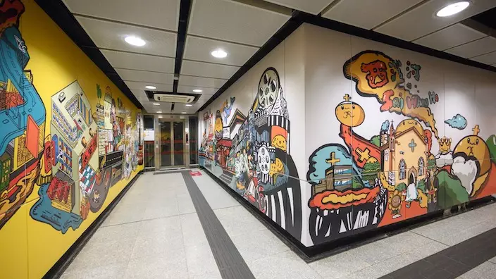 為了培育本地藝術人才,港鐵將藝術融入不同車站。今年四月,青年學員以街頭塗畫為西灣河站添上新裝。