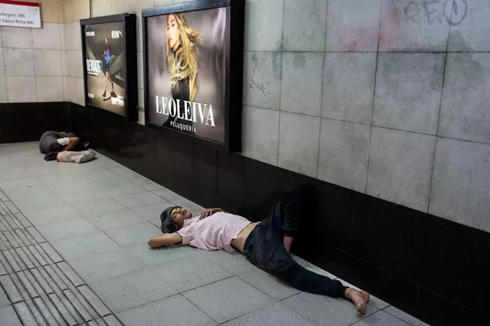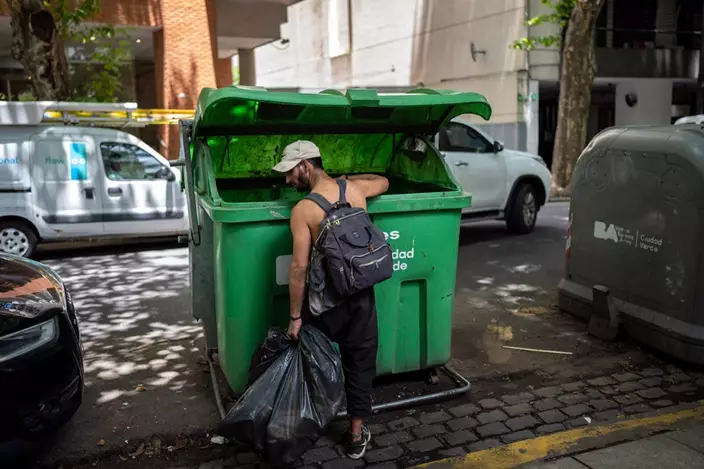 阿根廷的一個路人在垃圾中尋找可回收物。AP圖片