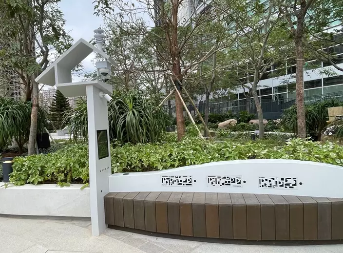 智能長椅融合了鳥屋設計、可踏式太陽能板供電、無線充電器及照明感應器,還會為遊人提供天氣資訊和公園節目表。長椅亦具有帶風扇和動態感應器的水冷排,在炎熱的日子利用回收的雨水,為遊客送上清涼的微風。