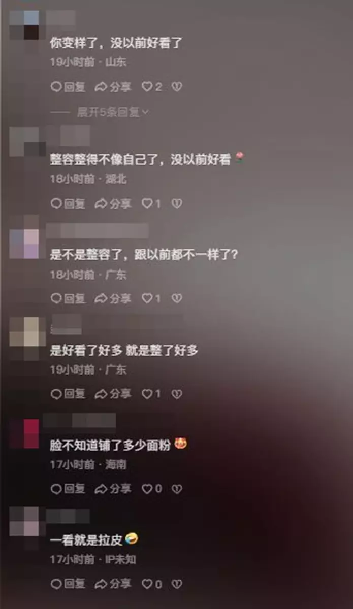 毒舌網民直指:「是不是整容了?」、「整容整得不像自己了,沒以前好看」、「一看就是拉皮了」。