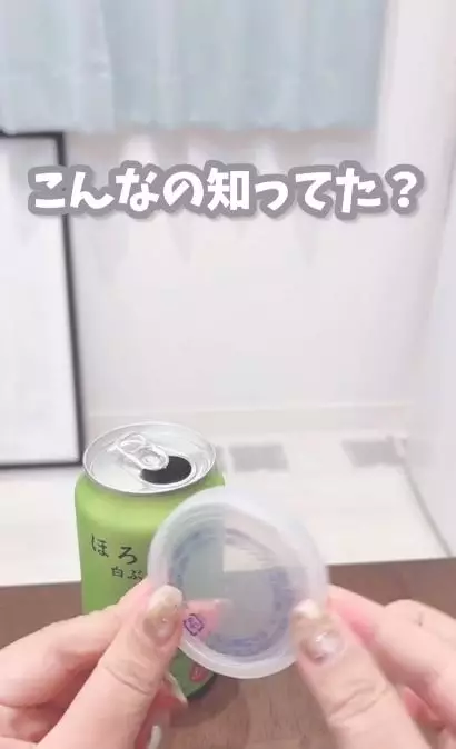 日本網友Emi在IG(@home_kagaya_o1)上分享,指平時有易開罐的飲品喝不完,就會想「可以找到合適的蓋子」就好了,後來她發現輕酒杯上通常都會有個白色塑膠蓋,如果把這個保留下來,竟十分適合易開罐用。