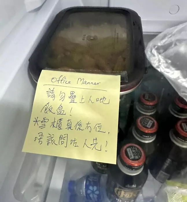 打工仔大呻同事多番於雪櫃內的飯盒貼「請勿疊上人哋飯盒」Memo,網民鬧爆無禮兼無理,紛紛教路事主反擊。