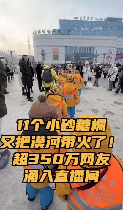 據內媒報導,冰雪之鄉哈爾濱因吸引了眾多民眾而成為今年最「熱」的地方,尤其是一群來自廣西的小朋友,他們的哈爾濱之旅在網上引發了廣泛關注。這11位3至6歲的小朋友因統一身著「橘色外套」而被網友親切地稱為「小砂糖橘」。
