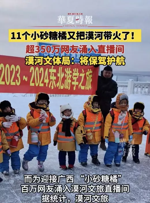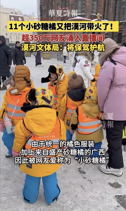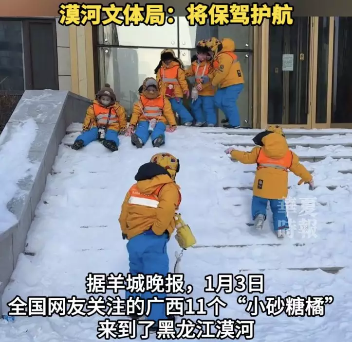 廣西11名幼兒園小朋友前往哈爾濱進行研學,因身著橘色外套被暱稱「小砂糖橘」,更引來當地文旅局、消防站及眾多網民的照看。