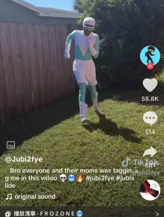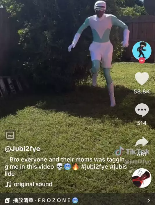隨著slickback的再次爆紅,舞步的創始人Jubi也在TikTok上作出了回應,他穿上了萬聖節酷冰俠的裝扮,展示了自己的滑步舞技。現時,這個魔性滑步舞也吸引了許多年輕人都在爭相模仿。