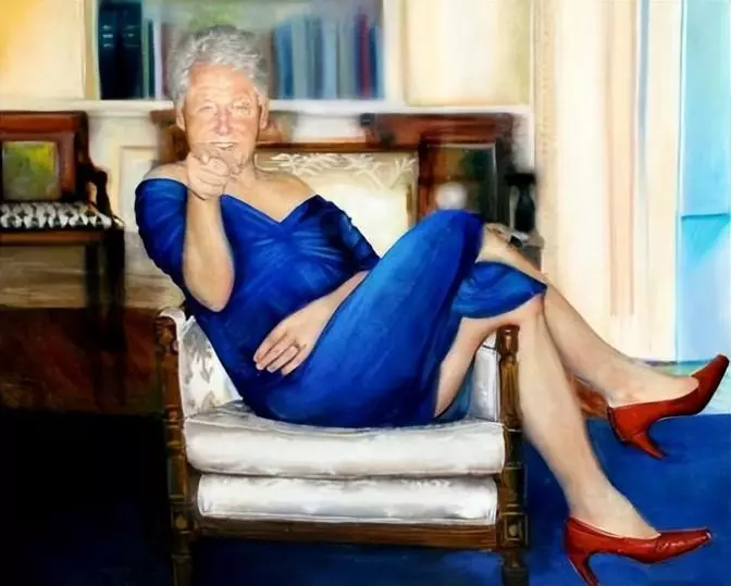在島上還有美國前總統克林頓作女人打扮的油畫。