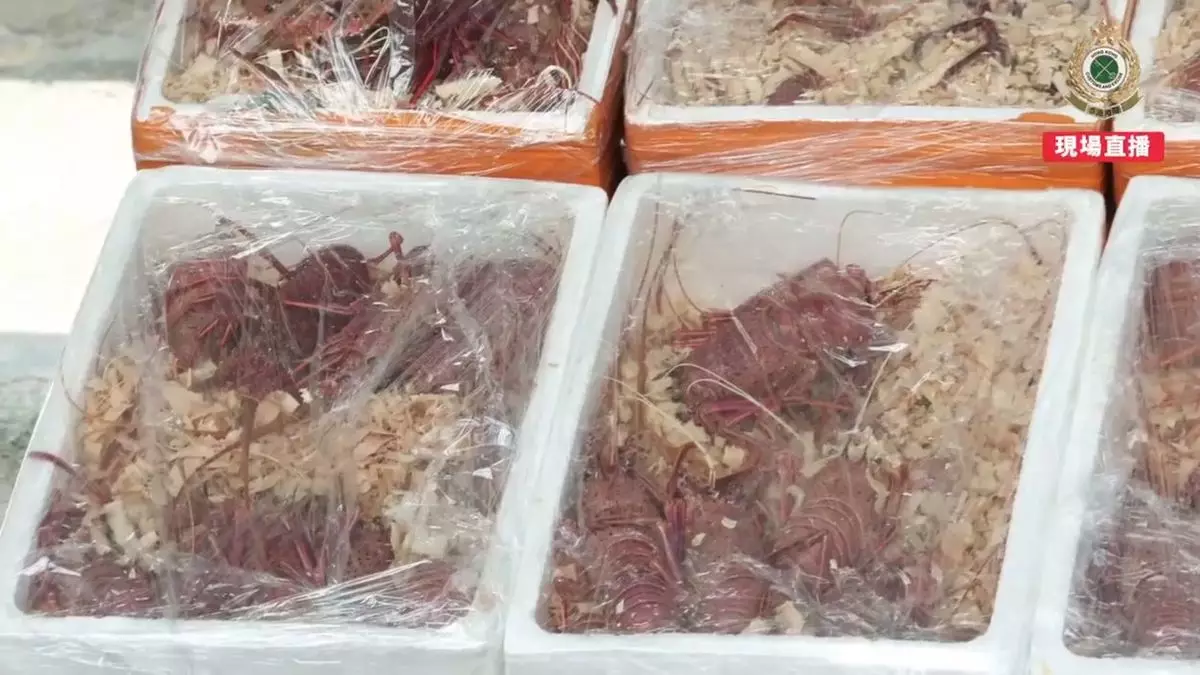 海關檢獲的龍蝦。香港海關FB短片截圖
