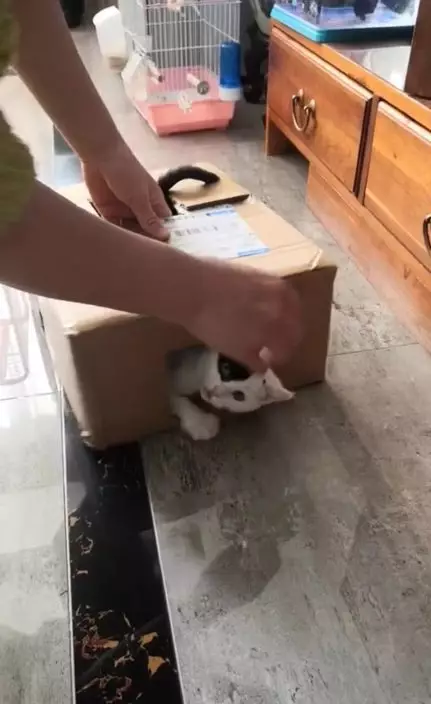 從飼主分享的影片可見,原本正舒適地窩在紙箱裡的愛貓突被飼主拉出來。隨後紙箱被飼主拿起並進行大力搖動,這時紙箱裡的公仔、手錶、髮圈及其他小物品相繼掉落。而這時愛貓看見自己花費了許多心思珍藏的物品被發現時顯得特別激動,只見牠急切地試圖將四處散落的物品撿回,其畫面相當逗趣。