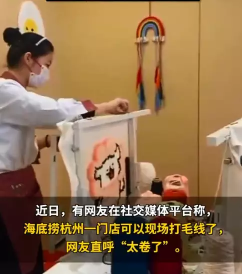 海底撈杭州一分店新增「毛線小屋」,讓客人一邊排隊一邊享受手作的樂趣,現場排起了人龍!