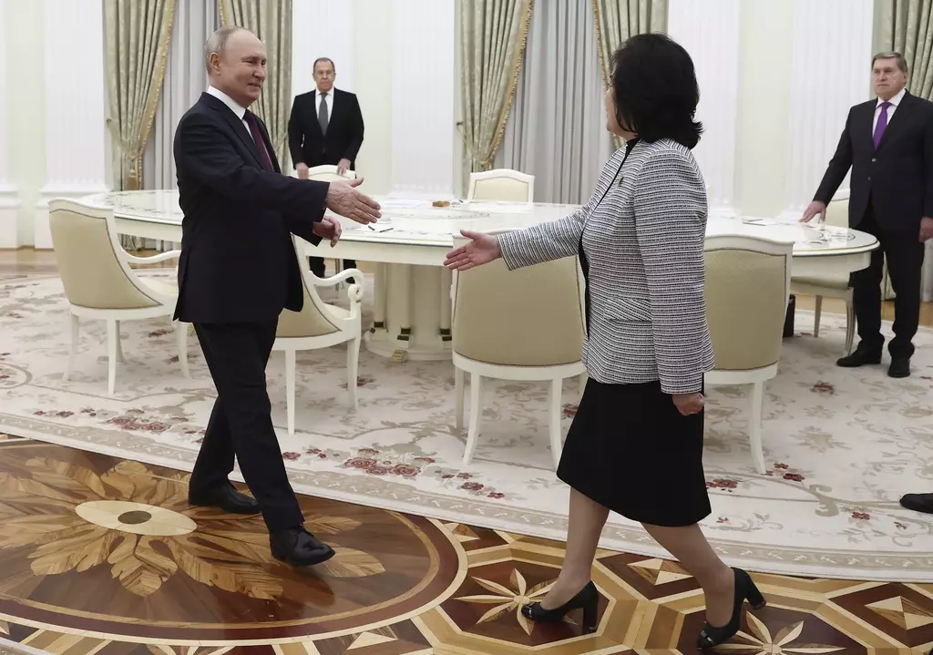 1月16日,俄羅斯總統普京(左)在克里姆林宮會見北韓外務相崔善姬。美聯社