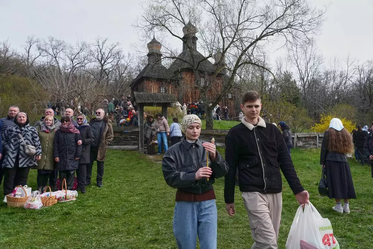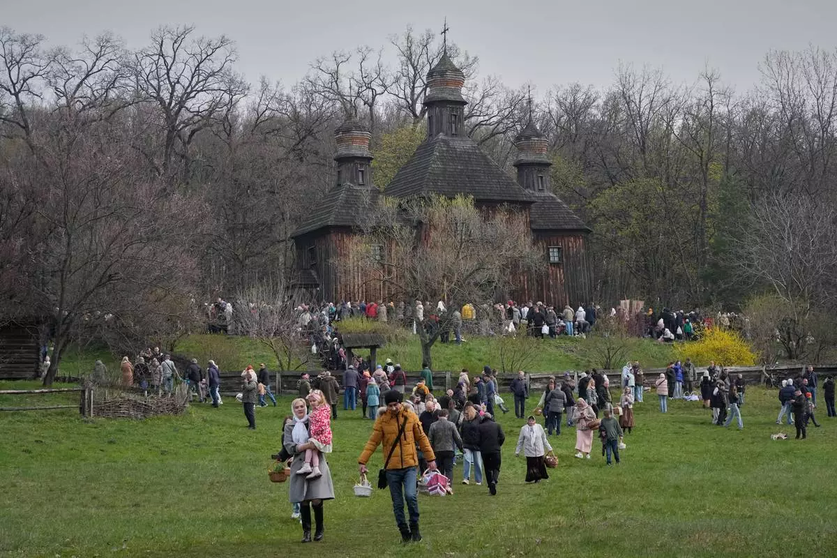 在基輔市郊,數千人聚集在一個露天國家遺產公園慶祝復活節,儘管外界對停火能否維持抱持懷疑。