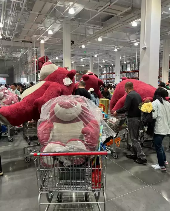 就算這幾家的會員重合率挺高,不過高品質結合高性價比,和大家都保持各有各的特色,吸引力拉滿了,現在更主打的是一個看誰更具備稀缺性,能够戳中顧客的購買欲。它們也擅長利用打卡的社交屬性,去把消費欲望無限放大。像 Costco 家的巨型草莓熊,山姆的超大桶泡面,全是網紅打卡處。