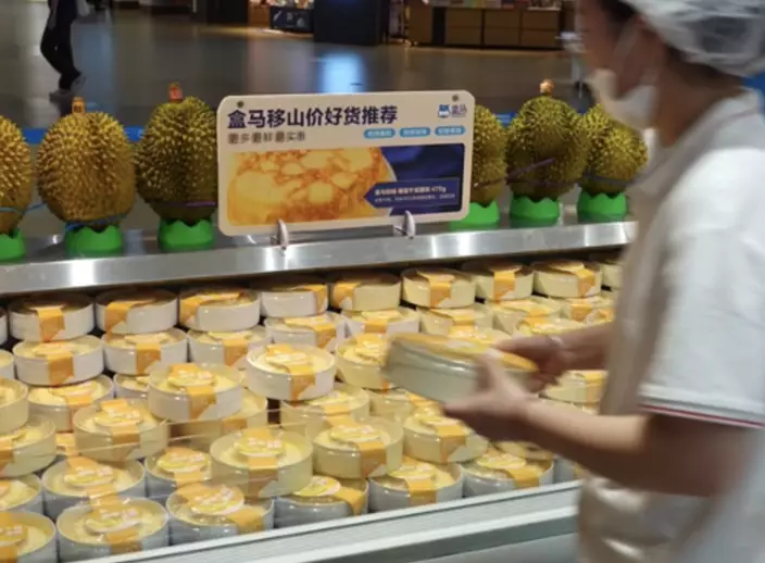 商品類別排布上,其實和其它店大同小异,只是增加了些華南特色,有花膠鶏、臘味等食品供應。生鮮産品當天一樣熱賣,車厘子、蛋糕、蝦、三文魚衆多美食一應俱全。