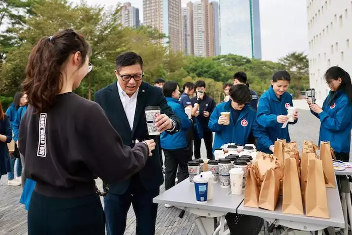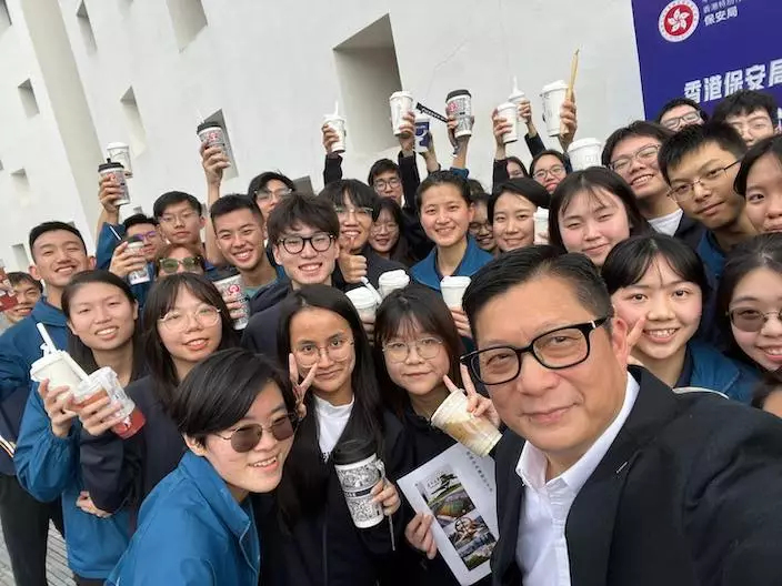 訪問期間鄧融入當地潮流,請所有師生飲內地網紅茶飲,鄧說他自己都可得嚐地道風味。