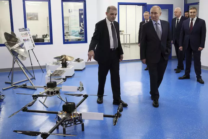 普京到聖彼得堡一間海洋大學參觀。 AP圖片