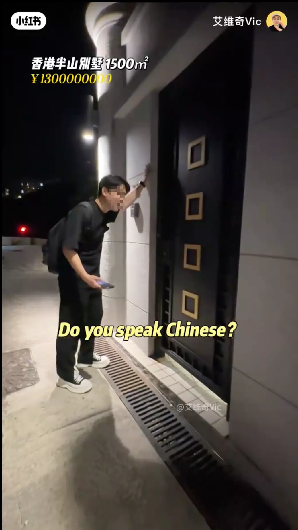 該名內地網紅在影片中指,自己將帶大家一探究竟香港半山別墅的真實樣貌,來到第一間豪宅,他貿然撳鐘竟然有人應門,網紅男子用英文詢問,對方是否可以說中文,獲門後的男子以普通話答到:「說吧」,網紅透露自己的意圖,希望想進屋參觀,則遭到簡單而直接的拒絕:「不可以呀」。