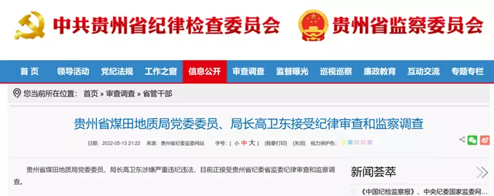 貴州省紀委監委網站截圖