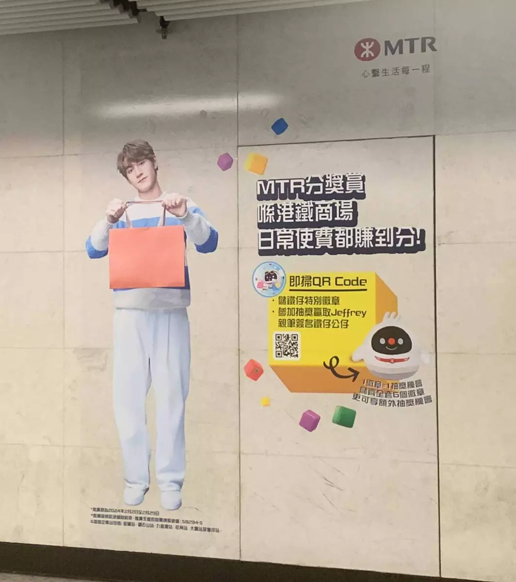 除主題列車外,6個指定港鐵站內更有「Jeffrey x 鐵仔」⼤型車站海報,等你可以輕鬆同Jeffrey 合照,絕對係新年同情⼈節必影打卡點!MTR Mobile登記⽤⼾由即⽇起⾄2024年2⽉29⽇,親⾝到指定地點掃瞄海報上的專屬⼆維碼,即可收集「MTR Mobile 特別版鐵仔紀念徽章」,隨即⾃動參加抽獎,有機會贏取Jeffrey親筆簽名鐵仔公仔1個(名額共10名)。每收集1個徽章就有1次抽獎機會,集⿑全套6個鐵仔徽章,更可獲得額外4次抽獎機會(合共最多10次抽獎機會)。咖啡豆們及車迷們立即起⾏啦!