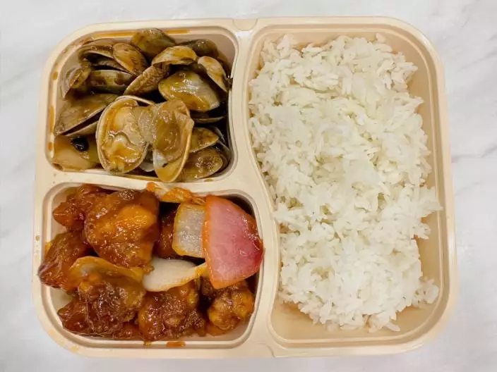 「權發小廚」自疫情開始便由酒樓轉型為兩餸飯專門店,每天供應多款餸菜,因性價比高而大受歡迎。除了招牌菜式炒鵝腸、生炒骨、梅菜扣肉等家常小菜外,多款海鮮種類,包括有清蒸芝麻斑、蒜蓉粉絲蒸蝦、蟹鉗等更是令人趨之若鶩。1月1日新年還提供新鮮龍蝦供食客過節,好有諗頭。