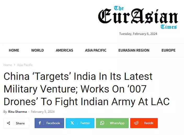《南華早報》報道,解放軍正在開發一款無人機,將在未來10年內取代人類執行複雜特種作戰任務。印度《歐亞時報》認為,種種跡象顯示,這就是解放軍為印度量身定製的新戰法。