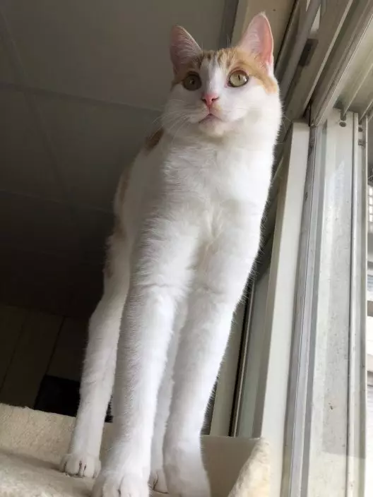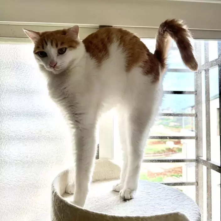 日本飼主曬自家橘白色貓貓拱腰做舒展動作,表情姿態竟與名畫《白貓》的抽象畫面如出一轍。