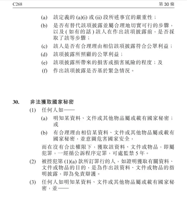 其次,《條例草案》提供適當的免責辯護,進一步明確了罪與非罪的界限,有效釋除公眾對「言論和新聞自由會否受限」的疑慮。《條例草案》對「輸入具煽動意圖的刊物」、「非法獲取、管有、披露國家秘密」、「非法披露看來屬機密事項的資料」等特定罪行的免責辯護作了具體規定。特別是充分吸納公眾咨詢期間的社會意見,明確將維護公眾利益作為非法獲取、管有、披露國家秘密有關罪行的免責辯護理由,有效保護言論和新聞自由。