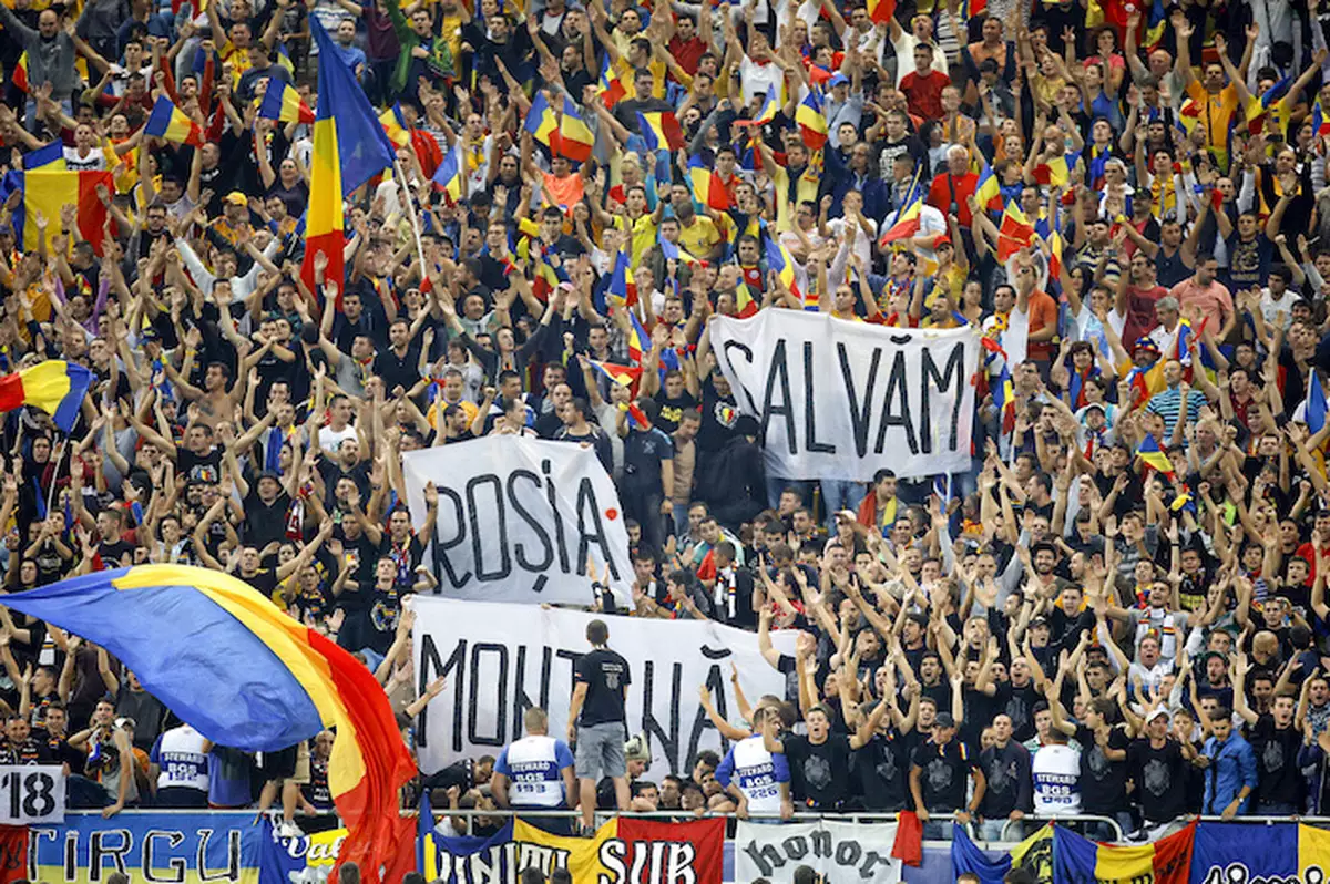 2013年一場世界盃足球外圍賽賽事中,羅馬尼亞球迷舉起「救救羅西亞蒙塔納」的幅額,示威者抗議加拿大公司開採該國金礦。 AP資料圖片