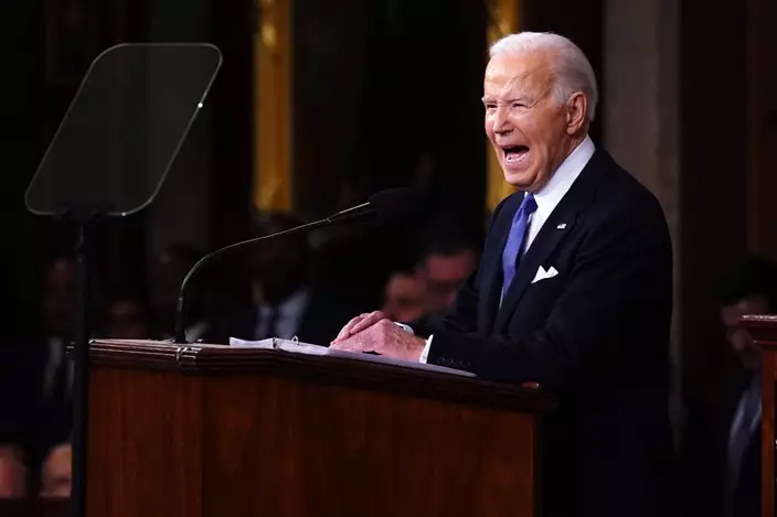 拜登當地時間3月7日在美國國會衆議院發表國情咨文演講。AP圖片