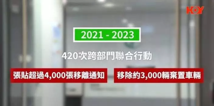 運輸署指過去兩年,各區民政事務處籌辦超過420次跨部門聯合行動,一共張貼超過4000張通知,並移除大約3000部棄置車輛,當中大部分是電單車。(《一線搜查》影片截圖)