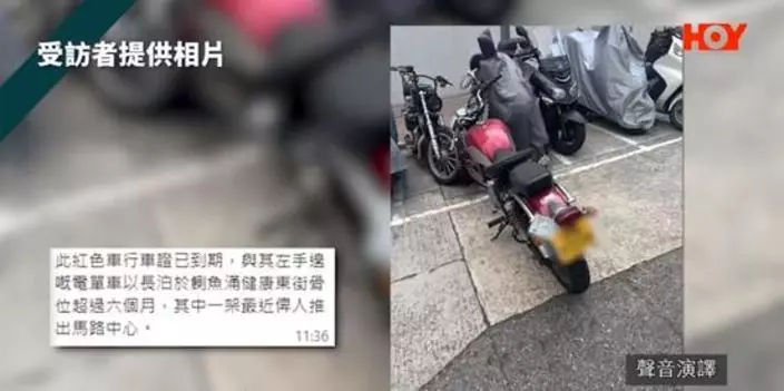 另一位車主黃先生表示如果骨位沒有位泊就要自己找地方安置電單車,希望政府加強巡邏,將霸佔路邊車位又沒有牌費和保險的死車移走。(《一線搜查》影片截圖)