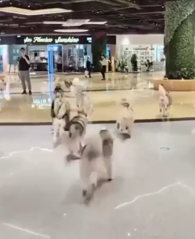 內地一狗咖的上百隻哈士奇竟「集體越獄」,發瘋般地在商場飛奔嚎叫,場面十分混亂……