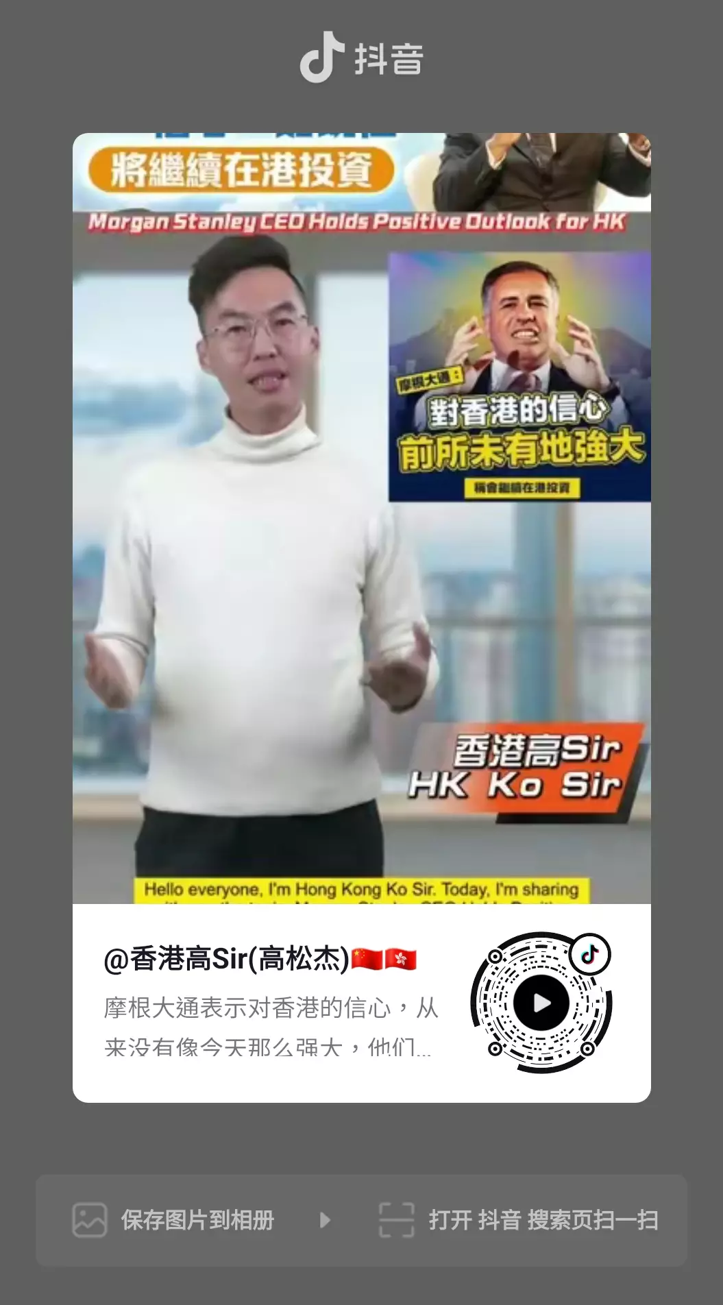 Hello everyone, I'm Hong Kong Ko Sir. Today, I'm sharing with you the topic: Morgan Stanley CEO Holds Positive Outlook for Hong Kong. Recently, Daniel Pinto, the CEO of Morgan Stanley, expressed in a media interview that Morgan Stanley will continue to invest in Hong Kong and expand its business there. He believes that Hong Kong will continue to leverage its potential as the world's second-largest international financial center and stated that his confidence in Hong Kong has never been stronger than it is today, and his confidence in Hong Kong will remain unchanged for a hundred years.