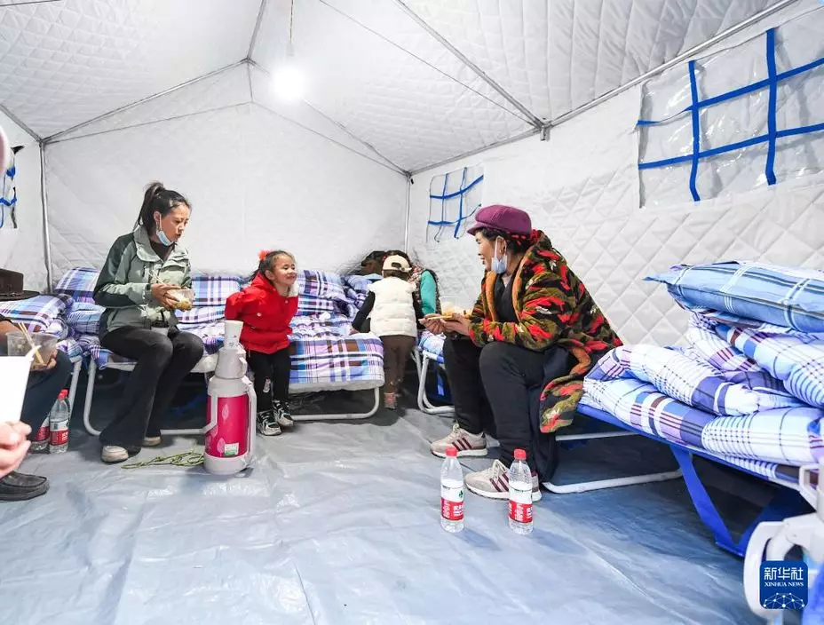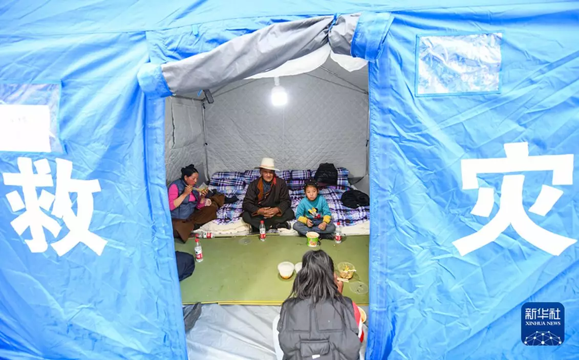 當地3個鄉鎮已疏散超過5900人,他們被安置在一些學校的救災帳篷。 (新華社圖片)