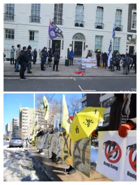 激進港人組織號召於3月23日在海外多個城市舉行「反23條立法集會」,但參加人數寥寥可數。倫敦的集會(上圖)不足200人人,而多倫多集會(下圖)也只有100多人。