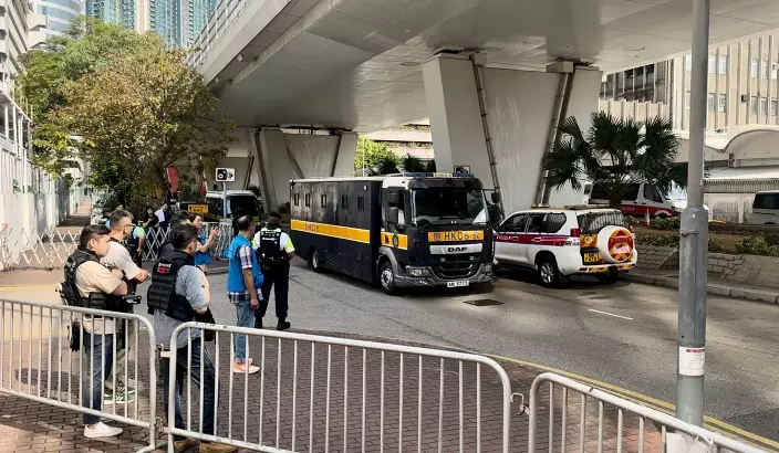 載着黎智英的囚車到庭。 巴士的報記者攝