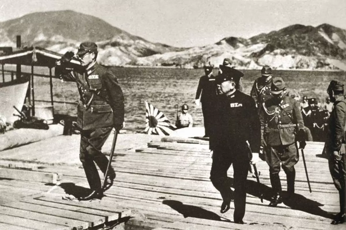 日軍於寶馬山炮擊北角,左上角為北角發電廠 (網上圖片)