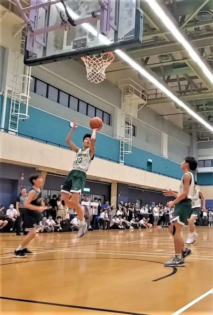 上周二在柴灣體育館舉行的港島區男子丙組決賽,由聖若瑟書院迎戰高主教書院。上半場聖若瑟挾着上場贏20分的強勢,壓着對手來打,單是第一節就攻入21分,首節完聖若瑟領先17分。不過,高主教的球員和場邊的支持者並未放棄,打氣聲仍然此起彼落,但聖若瑟始終技高一籌,他們在每節都贏對手的情況下以50:19勝出。聖若瑟隊長趙梓舜射入17分,為全場最高,也順理成章成為賽事最有價值球員。