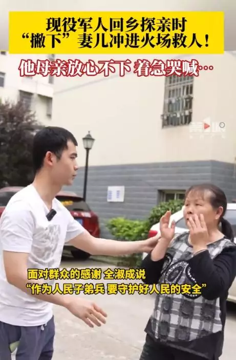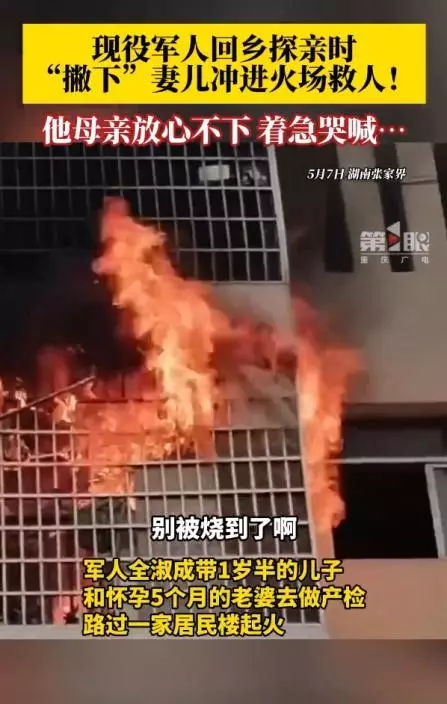 據《重慶廣電第1眼》報導,湖南張家界一名休假軍人全淑成近期陪同懷孕5個月的妻子及1歲半的兒子前往醫院做產檢時,途中驚見一棟居民樓發生火災。