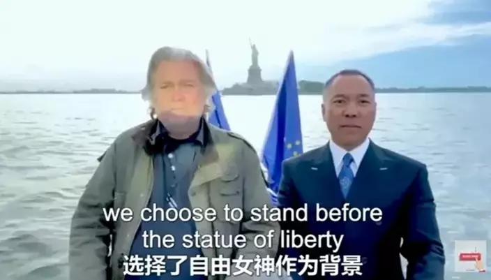 2017年,郭文貴開始在社交媒體平台上攻擊中國,以此吸引一些美國極右翼分子的關注。當年底,剛被調離白宮的班農出現在郭文貴面前。
