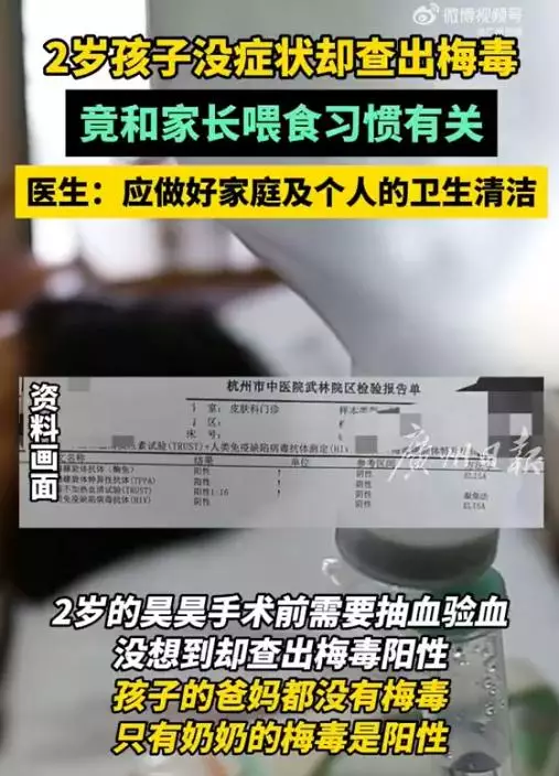 據《杭州日報》報導,浙江杭州一名2歲男童昊昊今年3月被媽媽帶往醫院進行手術前的血液常規檢查時,意外被診斷出患有梅毒,這檢查結果令媽媽相當錯愕。