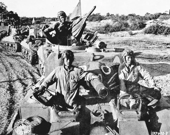 中國遠征軍換了美軍裝備,圖中為美製M4A4坦克 (網上圖片)