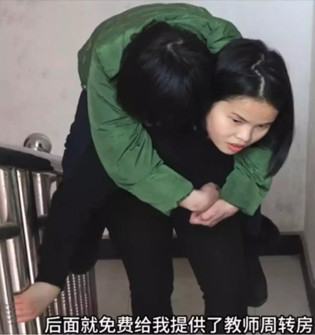 孝順女教師在就讀大四時背著癱瘓媽媽上大學,畢業後再帶媽工作,事無鉅細照顧著媽媽。