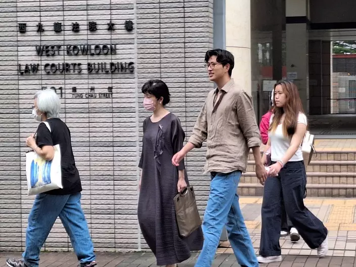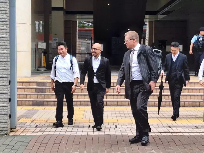 黎智英的外甥等家人離開法庭。 (巴士的報記者攝)