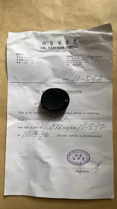 有街坊於Facebook群組「青衣街坊吹水會」上載了一張2012年葉肇慶醫生開出的病假紙照片,並表示得知葉醫生數月前已離世的消息。這張病假紙是其哥哥保留下來的,以此紀念這位仁心仁術的醫生。