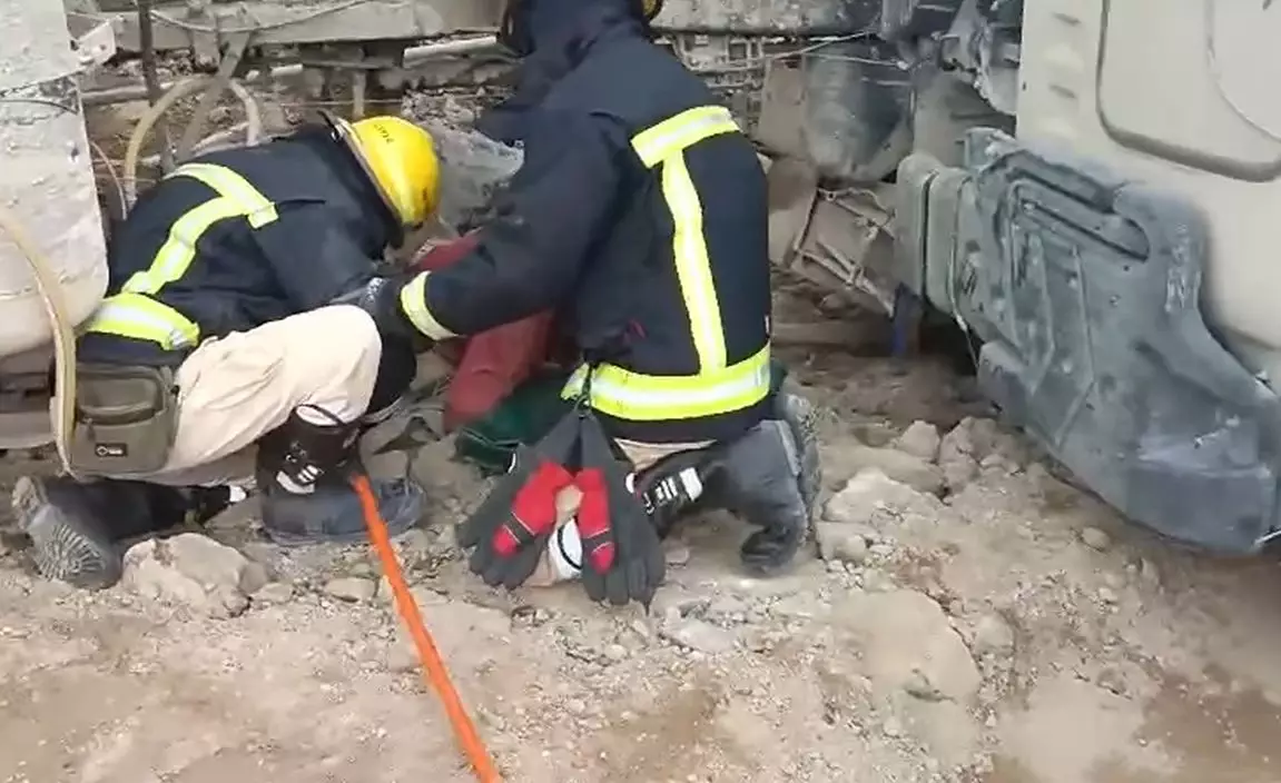 由網上流出影片所見,事發後男子仍然清醒,但奈何下半身被田螺車組件壓住動彈不得。有消防人員接報到場,嘗試剪開部分車組件將他救出。